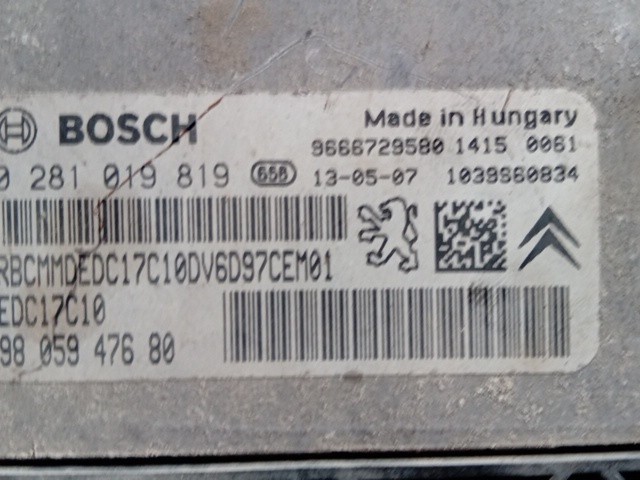 CENTRALINA MOTORE CITROEN JUMPY 2013 1.6 HDI BOSCH 0281019819