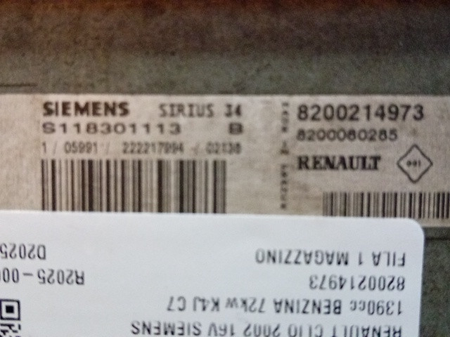 CENTRALINA MOTORE RENAULT CLIO 2002 1.4 BENZ. 16V SIEMENS 8200214973