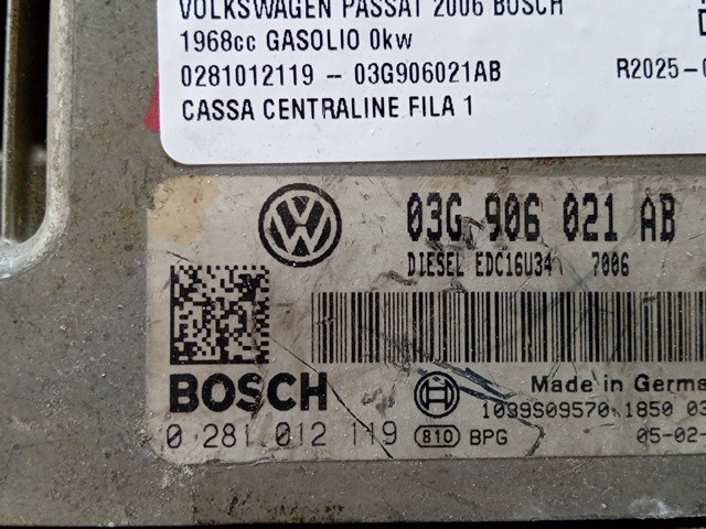 CENTRALINA MOTORE VOLKSWAGEN PASSAT 2006 2.0 T.D. 140CV BOSCH 0281012119 – 03G906021AB